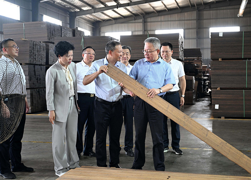2025年6月16日,省政協(xié)副主席虢正貴來湖南桃花江竹材科技股份有限公司調(diào)研生態(tài)資源轉化與特色產(chǎn)業(yè)融合發(fā)展。公司董事長、省人大代表薛志成陪同并介紹情況。虢正貴充分肯定了桃花江竹材在竹資源利用及竹特色產(chǎn)業(yè)融合發(fā)展所取得的成果,他鼓勵企業(yè)繼續(xù)發(fā)揮龍頭優(yōu)勢,充分利用好桃江資源稟賦和產(chǎn)業(yè)優(yōu)勢,深化產(chǎn)學研融合,提升竹產(chǎn)業(yè)附加值,為民族地區(qū)生態(tài)資源高效轉化和特色產(chǎn)業(yè)融合發(fā)展探索更多經(jīng)驗。